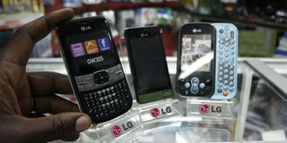 LG mobile phones on display at a Nairobi shop. The firm unveiled the LG V20 smartphone last year. PHOTO | FILE