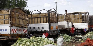 Trucks deliver cabbages at a market in Juba. FILE PHOTO | NMG
