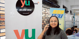 A woman makes a call at a Yu outlet in Nairobi. Essar expects its Kenyan customers to number 2 million before March 2010. Photo/FREDRICK ONYANGO