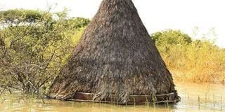 A hut at Roberts Camp Hotel submerged in Lake Baringo. FILE PHOTO | NMG