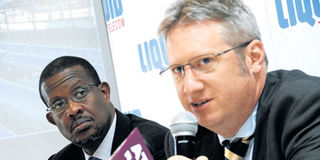 Liquid Telecom Rwanda CEO Sam Nkusi and Kenyan counterpart Ben Roberts. PHOTO | FILE