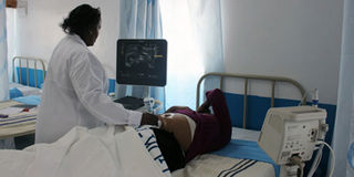 Githurai Lang’ata Health Centre sonographer Lucy Ng’endo performs an ultra sound scan on a patient. PHOTO | VERA OKEYO | NATION MEDIA GROUP