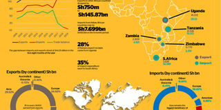 Latest provisional data show trade deficit in Africa — the gap between imports and exports — stood at Sh4.25 billion in the first eight months of the year compared with 12 months earlier. Total sales by Kenyan companies to other African countries remained flat, falling by Sh756 million, or 0.52 percent, to Sh145.88 billion against a Sh7.70 billion or 5.42 percent, growth in imports to Sh150.13 billion in the period.