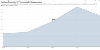 For instance, the total number of cases handled by the EACC increased by 2.3 per cent from 7,917 in 2015/16 to 8,096 in 2016/17, of 89 were approved for prosecution by the Office of the Director of Public Prosecution(ODPP).