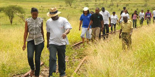 Journalists inspect the Voi-Taveta railway line, which has not been in use for almost four decades. FILE