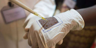 A volunteer tests the "Faso Soap", a soap aimed to repel mosquitoes and protect people from the malaria, during a laboratory test with volunteers on November 4, 2016 in Ouagadougou. AFP PHOTO | NABILA EL HADAD