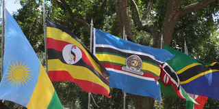 Flags of EAC member states during a past summit. The search for East Africa’s single currency enters a critical stage this week. FILE