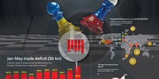 The 23 percent or Sh189 billion jump in the import bill to Sh1.02 trillion is largely a result of the ongoing Russia-Ukraine conflict, which has disrupted global supply chains of critical commodities such as petroleum fuels, metals, fertiliser and grains.