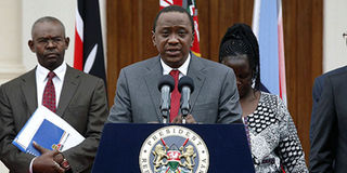 President Uhuru Kenyatta addressing journalists at State House last year. PHOTO/FILE