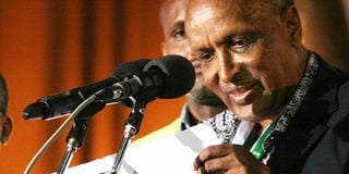 IEBC commissioner Abdullahi Sharawe announces presidential results at the National Elections Centre at Bomas of Kenya in Nairobi March 7, 2013. Photo/Phoebe Okall