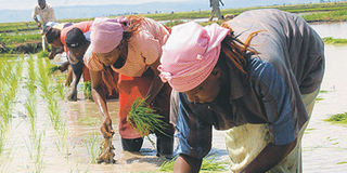 Farmers planting rice in Mwea. NESC advisor Prof Kun Mo-Chung is urging Kenya to shift its economic model from agriculture-based to technology driven. Photo/File