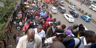 The main arteries feeding the city - Mombasa, Thika, Waiyaki, Lang’ata, Ngong, Jogoo, Landhies, Kiambu and Juja roads - were no-go zones as a traffic gridlock saw most workers walking to work.