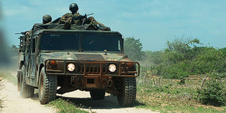 A Kenya Army jeep at the Ishakani border point in Kiunga as it heads for the battlefront in Somalia on October 27, 2011. Hotels, restaurants and supermarkets are suffering lower sales as customers shun crowded areas due to the heightened state of security.