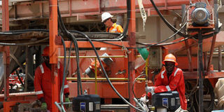 Tullow Oil engineers work at the oil rig at Ngamia 1 in Turkana County in 2012. PHOTO | FILE