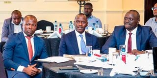 Kenya Pipeline Company Managing Director Joe Sang (Centre), Faida Investment Bank Lead Transaction Advisor Dr Belgrad Kenne (left) and Public Investments and Portfolio Management Director General Lawrence Kibet during the Kenya Pipeline Company initial public offering (IPO) media roundtable at Sarova Stanley Hotel, Nairobi on January 20, 2026.