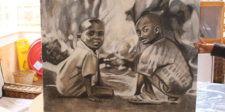 Charcoal drawings inspired by orphans from Western Kenya community centre. PHOTO | MARGARETTA WA GACHERU | NMG
