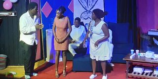 Bobo (R) with Zippy and Wambugu in Baby Shower, at Kenya Cultural Centre, May 1st, 2022. PHOTO | MARGARETTA WA GACHERU | NMG
