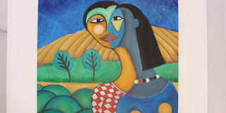 That is where Mbuthia has ‘Conversations in Silence’ that one can currently hear or rather see at One Off Gallery in Roselyn. The artist paints a picturesque vision of pastoral landscapes and lovers nestled into the green fields that tend to be rolling, and either terraced or adjacent to river banks.