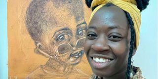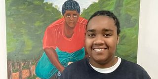 Nadia Wanjiru, artist intern at Kobo Trust at the Occupy Studio Exhibition, on August 20, 2023. PHOTO | POOL
