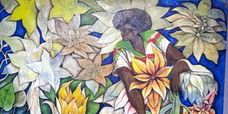 Peter Elungat's In the Garden painting at Ardhi Gallery during the Life Size exhibition on May 4, 2024.