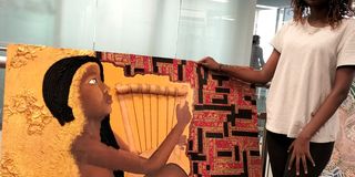 Imani Mwakena's mixed media work 'At a Glance' at Nairobi Garage, March 25, 2022. PHOTO | MARGARETTA WA GACHERU | NMG