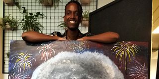 Mbiru Heho with his 'Zebra', 'At a Glance' at Nairobi Garage, March 25, 2022. PHOTO | MARGARETTA WA GACHERU | NMG