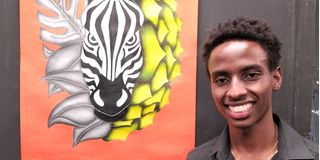 And finally, Matulai Muumbi explains how he portrays monumental moments in his life growing up on one side of his acrylic on wood panel painting while the other side is reserved for the 19-year-old self who plans to reach for the stars and explore the universe.