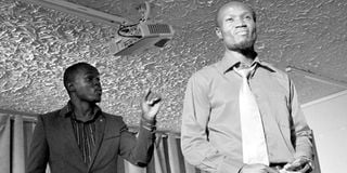 Peter Kawa (right) starred as Judge Harvey in Hearts of Art’s play, ‘All I Ever Wanted’. PHOTO | MARGARETTA WA GACHERU | NMG