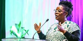 Sarah Muyonga, Meta Public Policy Manager speaks during the annual International Creator Day that recognises the impact of content creators in society, at The University of Nairobi on April 23, 2024.