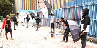 Youth engage in street photography and content creation in Nakuru City on January 21, 2024.