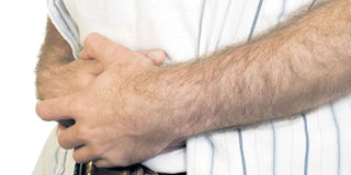 A man holding his stomach to supress urine. Urinary incontinence is any involuntary leakage of urine. Photo/FILE