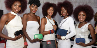 Models pose with Barbara della Rovere’s bags, made from fish leather, during a fashion show at the Sustainable Blue Economy Conference on November 27, 2018. PHOTO | SALATON NJAU