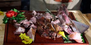 Carved meat by Chef George Githinji Kariithi at Liquor house on Kiambu road on Thursday, July 1, 2021. PHOTO | DENNIS ONSONGO