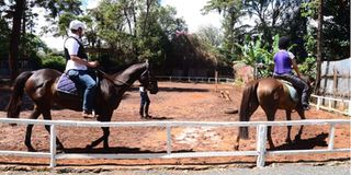 Learners ride horses at Xina Horse Riding School and Stables at Ridgeways Estate in Kiambu County. PHOTO | SALATON NJAU | NMG