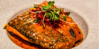Salmon in moilee sauce pictured on June 29, 2023, at Red Ginger Restaurant in Parklands Nairobi. PHOTO | BILLY OGADA | NMG