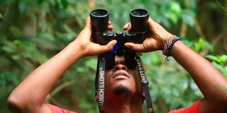 Robert Muchu birdwatching at Wajee Nature Camp. PHOTO | JOSEPH KANYI | NMG