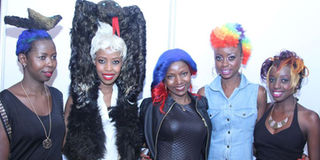Hair stylist Jane Akoth with same of the models in her creative hair styles during this years hair expo at Prestige Plaza on March 14, 2015. PHOTO | CHARLES KAMAU