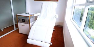 I sit on a white, leather reclining chair at the Pelvic Floor Neo-control Centre in Nairobi.