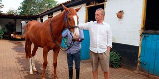 Henrick Maehle in the stable with a horse at Ngong Racecourse in Nairobi on December 16, 2023. PHOTO | BONFACE BOGITA | NMG