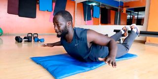 Tim's Health and Fitness Centre trainer Byron Majumbe demonstrating Swim back posture at the Rongai facility on July 26, 2022. PHOTO | DIANA NGILA | NMG