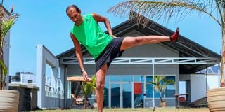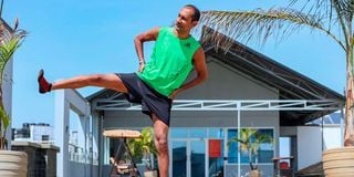 Nayan Savla stretches during a workout session at his home in Nairobi on January 29, 2026.