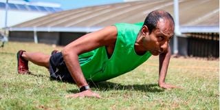 Nayan Savla does push ups during a workout session at his home in Nairobi on January 29, 2026.