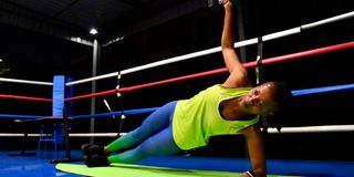 Avi Fitness Gym, Personal Trainer Trizah Mudengani demonstrates how to do an advanced Side Plank at the gym on June 9, 2022. PHOTO | FRANCIS NDERITU | NMG