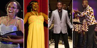 From left: Elizabeth Njoroge, Rhoda Ondeng, Zak Njoroge at Carnegie Hall New York, and Ken Wakia conducting Nairobi Chamber Chorus. PHOTOS | COURTESY