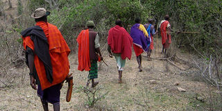 Maasai elders head to Mukogodo forest in Laikipia to pray for rain. FILE PHOTO | MWANGI NDUNGU