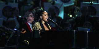 Alicia Keys, delivered a soulful element to the show with a set that contained songs in harmony with the theme of the event, starting with "Superwoman" which segued into "Girl on Fire" with the images of flames draping down the walls of Buckingham Palace.