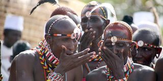 Turkana traditional dancers entertain guests at the Turkana festival. /Hezron Njoroge