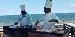 Every Sunday afternoon, the Kenya Bay Beach hotel hosts a cozy outdoor barbeque at the beach front Frangipani restaurant.