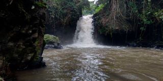 One half of the Twin Ndunda Falls at Camp Ndunda in Njukiri Forest, Embu County. PHOTO | POOL