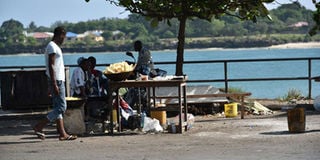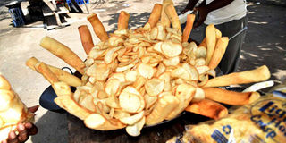 Fried cassava traders at the Mama Ngina Drive Park in Mombasa. NMG PHOTO
